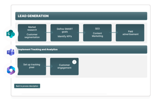 Med vores modul kan du f.eks. visualisere jeres eget forretningsflow, som brugere kan klikke ned igennem. Det virker godt for personer, der er meget visuelle i deres opfattelse og læring. Md en visuel opbygning øges overskueligheden og forståelsen af virksomhedens forretningsprocesser, hvorved medarbejdere løbende kan anvende og sætte sig ind i de forskellige arbejdsmetoder og flows.